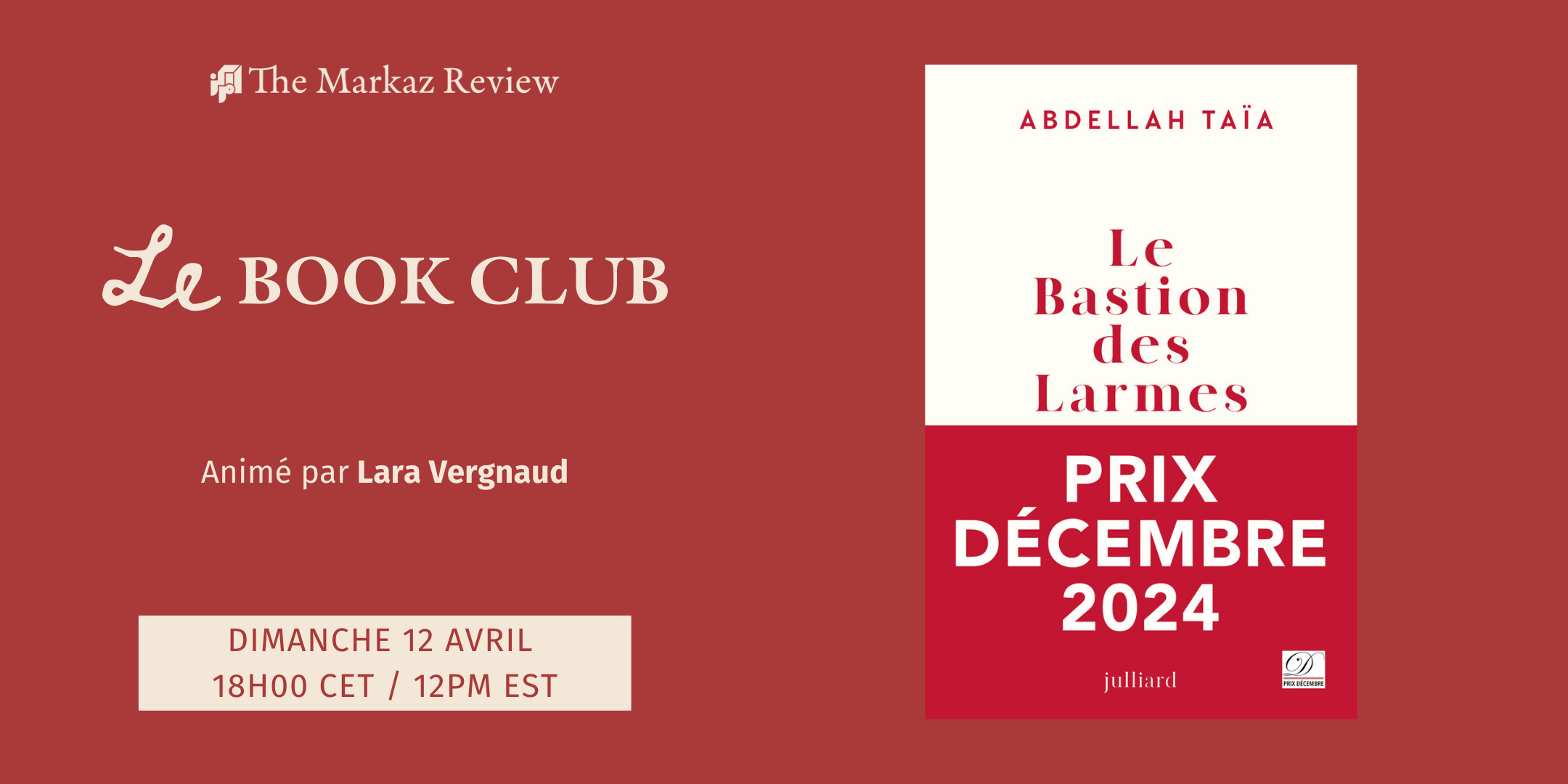 Notre lecture du mois de mars sera "Le Bastion des larmes" d’Abdellah Taïa. Nous en discuterons en ligne le ...