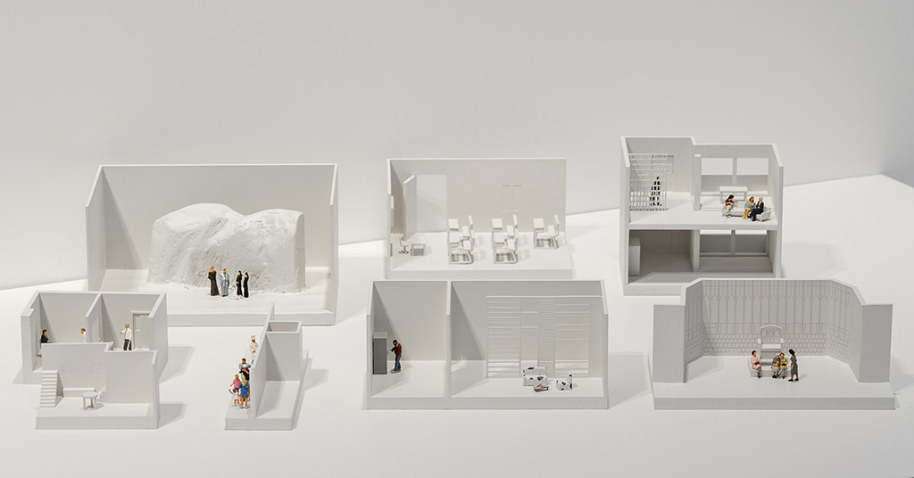 The drachma inspired the spectacular installation “Drachmas” (2018), which deals with another currency in the modernization of the Arab world, that of the rise of popular Arab daytime television and its now iconic dramas. Younis describes the mobility of this industry in times of upheaval: “Reproduced exteriors and interiors in studios made way for large numbers of cast and crew not just to move between Beirut, Amman, Baghdad, Cairo, Athens, Kuwait and Ajman studios, but also to navigate war, evade boycotts, save small capital despite currency devaluations and amass a great popularity, in a time that was continuously going through political predicaments.” In the installation, Younis reproduces 42 models of different TV sets spread across these cities, creating a visual transnational history of a cultural phenomenon through built structures, although these structures were neither real nor meant to last.