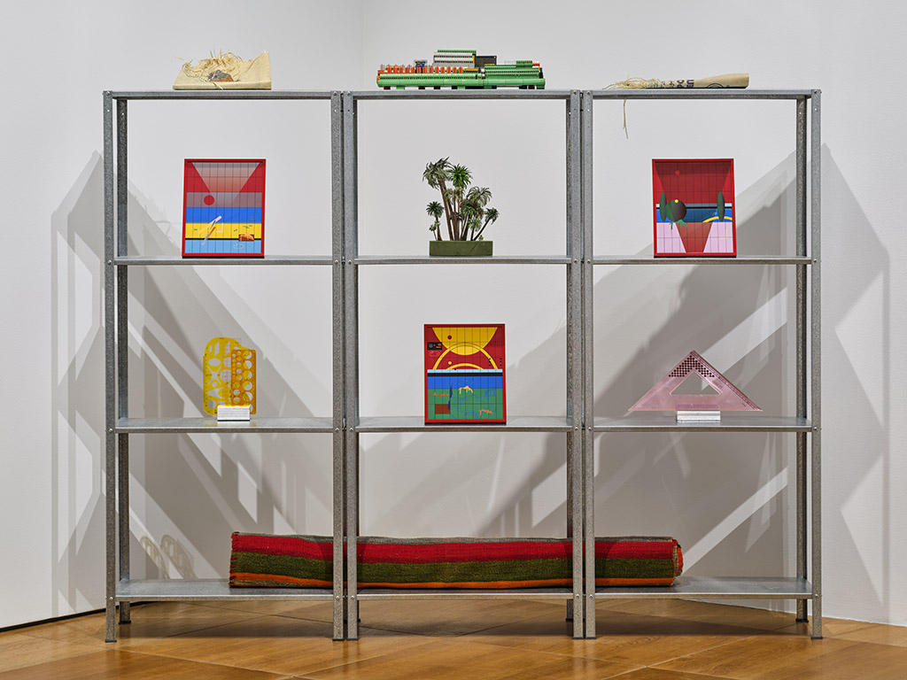But these 20-year cycles translate into a historical paradox: If the life expectancy of a building is two decades, the new structure wouldn’t be a reconstruction as it would be built in the style of that present moment. Thus, the styles from the previous decades would rapidly disappear, which is a double entendre that has led to the idea now commonplace in the western imagination, that Gulf cities do not have a history. Yet today, the Gulf remains as it always was, ever since the emergence of the ports such as Dubai or Manama in the 19th century: a cyclical place; a place in which you remain only for a number of years and not permanently. Younis’ “Corniche Tunnel Art” (2025) is an installation of domestic objects she collected during her time in Abu Dhabi, laid on IKEA shelves, speaking to this temporariness, in which the transient populations making home in these cities choose household items that are easily disposed of and which do not carry loaded memories.