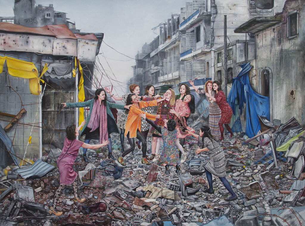 The following paintings are from her work in Femmes guerrières — Femmes en combat in Béthune: