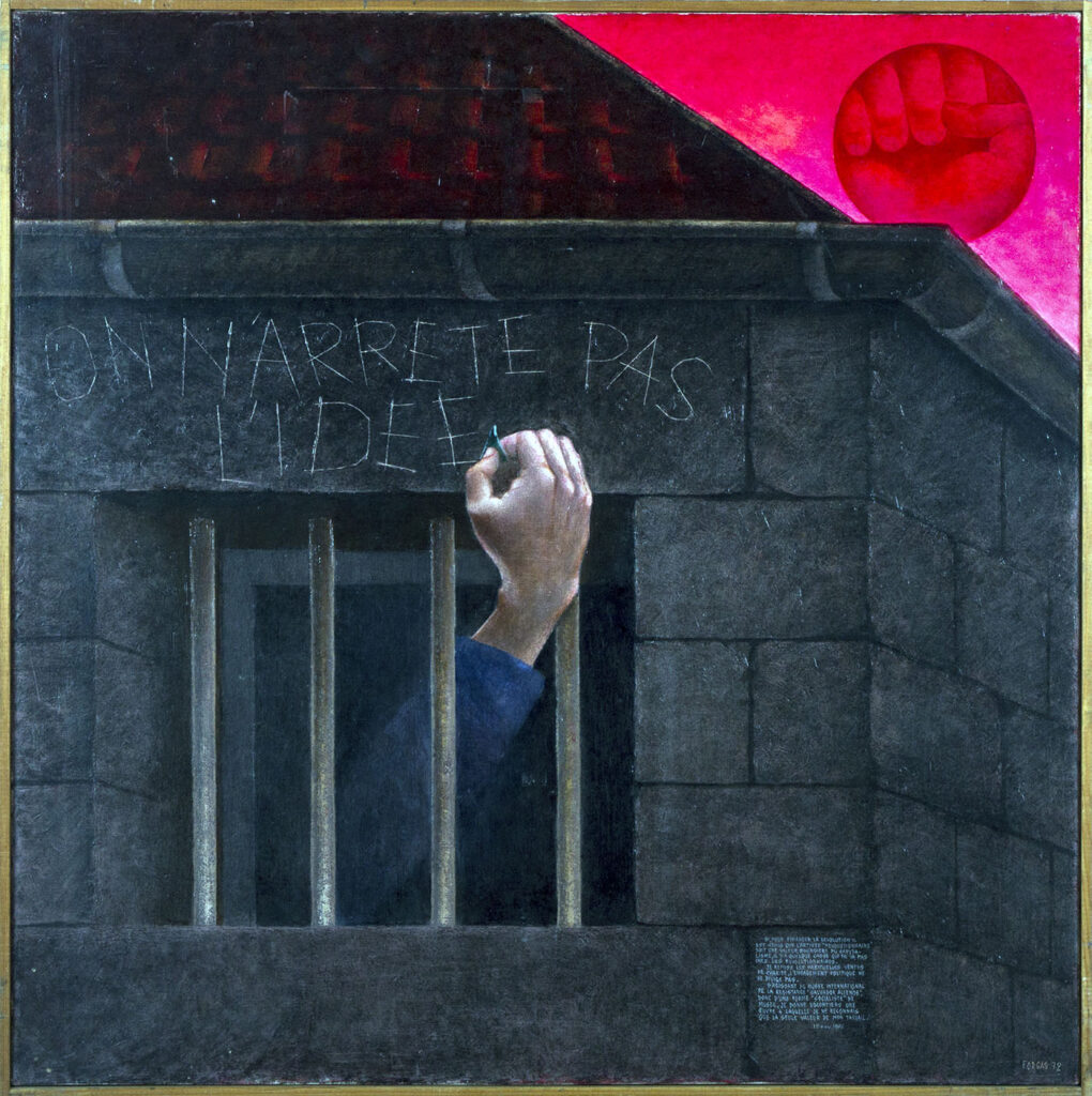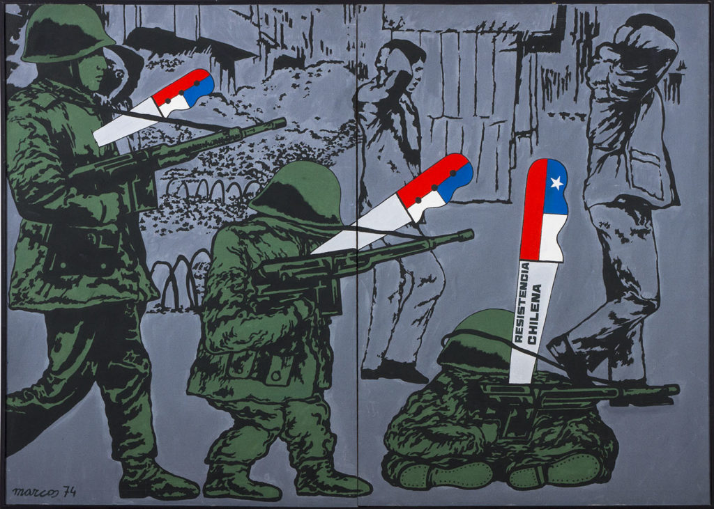 In 1972, Salvador Allende inaugurated the Museum of Solidarity. Following the 1973 coup in Santiago, Augusto Pinochet dismantled and pillaged the museum, which precipitated a mass exodus of the country’s artists. A number of these artists came together, as artist Ernest Pignon-Ernest points out in the “Museums in Exile” catalogue, “to create a collection to pay homage to Salvador Allende and to uphold his legacy, denouncing dictatorship and alerting the international community.”