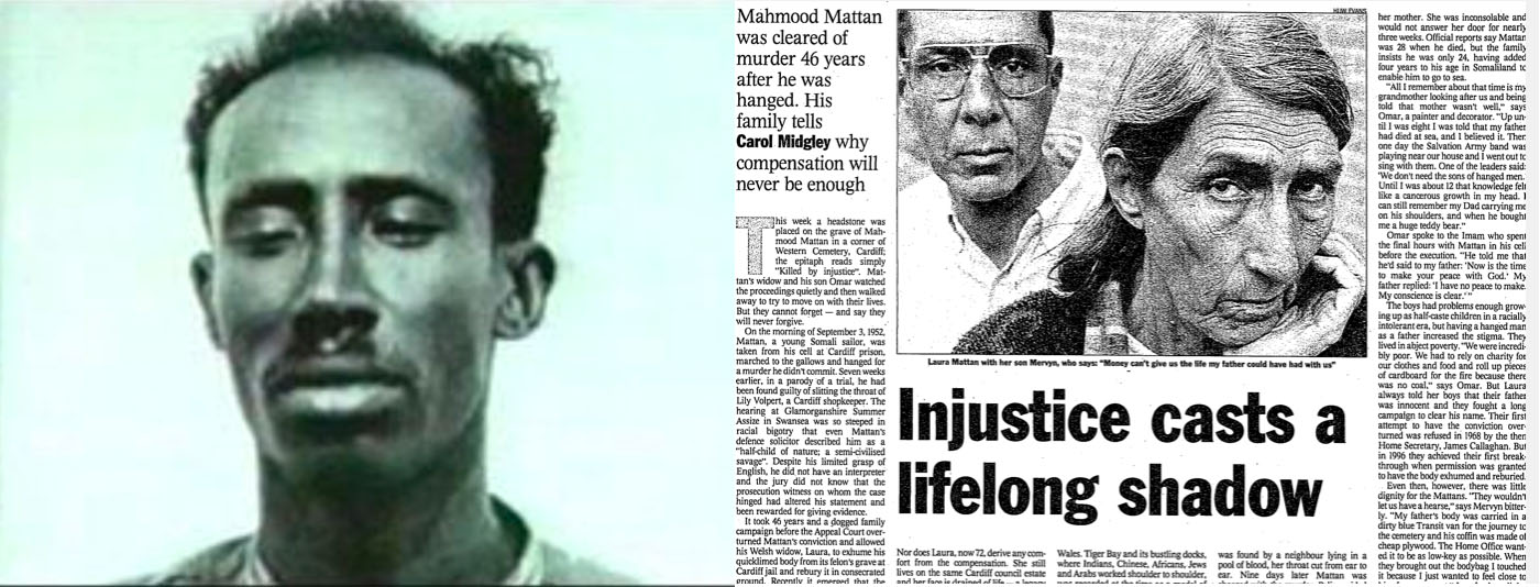 Mattan was executed in 1952, six months after the murder. He was denied the presence of any family member or acquaintance. His conviction was quashed 45 years later, on the 24th of February, 1998 — being the first case to be referred to the Court of Appeal by the newly formed Criminal Cases Review Commission. The family purportedly received a £1.4m pay out in compensation. In 1996 the family was given permission to have Mattan’s body exhumed and moved from a felon’s grave at the prison to be buried in consecrated ground in a Cardiff cemetery.
