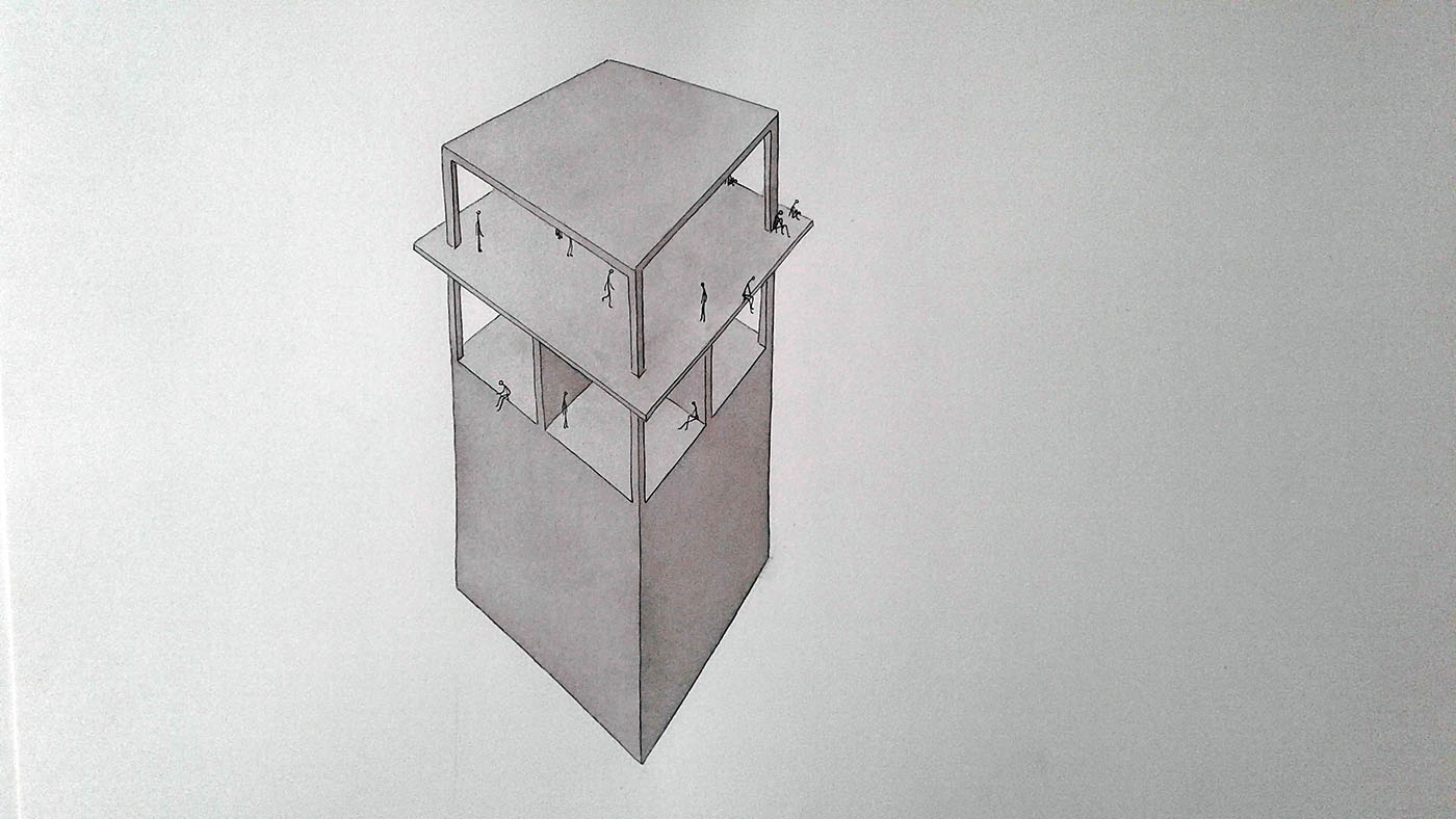 Encounters or “non-encounters” in spaces that condition this; this is the case in the Peuplés series of drawings.