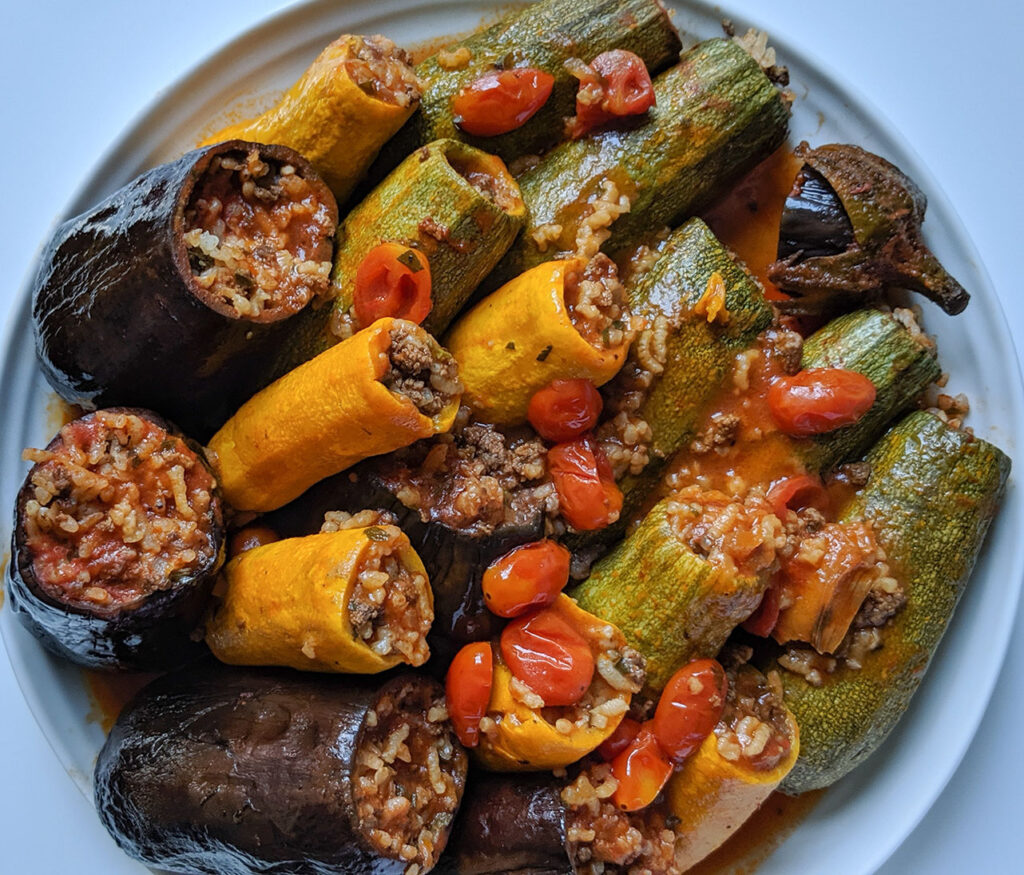 Daoud’s memories of food were dominated by his mother’s sumptuous mahshi, stuffed vegetables. In Palestine, Jerusalemites are well-known for the different mahshi they prepare: zuccini, eggplant, vine leaves, cabbage leaves and so many more. However, Daoud’s favorite meal was mansaf, that hearty dish shared in Jordanian and Palestinian traditions — melt-in-the-mouth lamb in a tangy fermented yoghurt served with rice.