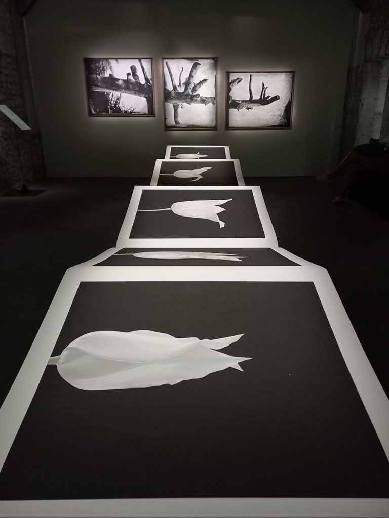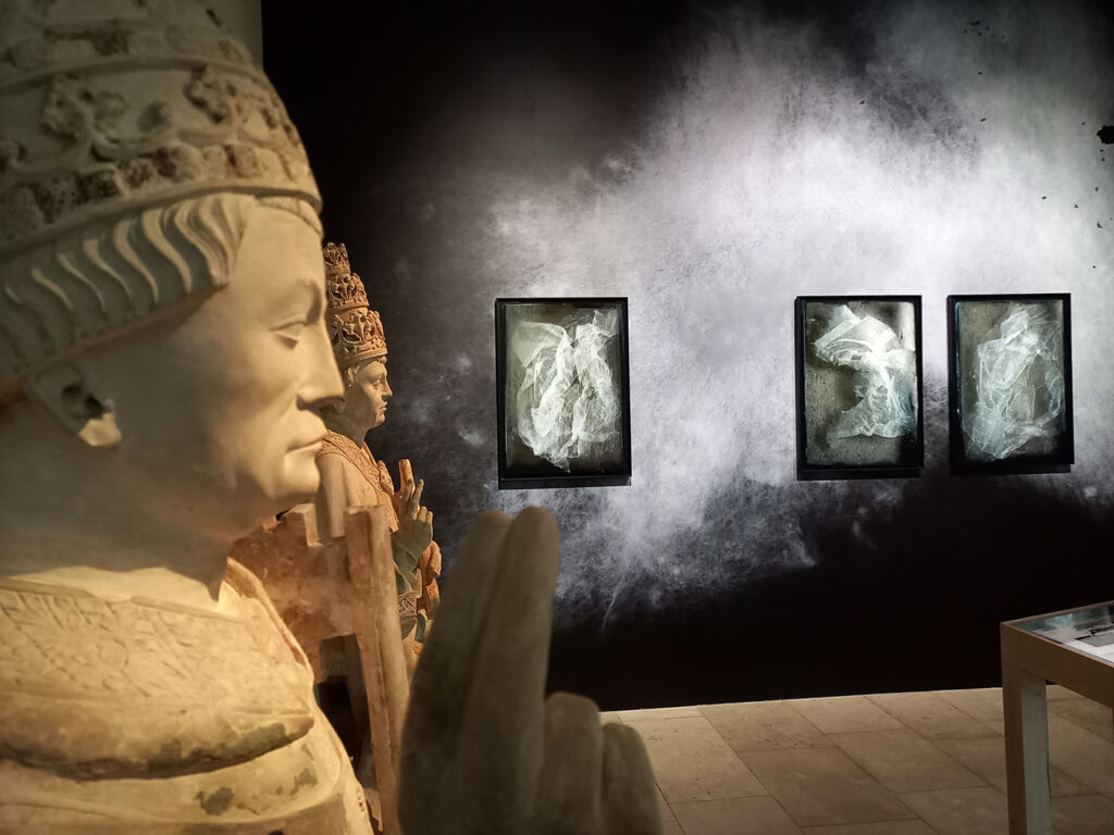 When we enter the abbey, we find ourselves in the penumbra. There begins our initiatory journey, challenged by the photos, the statuettes, the calm of the abbey. “It was necessary to give meaning to the exhibition in relation to the abbot’s residence,” said d’Hauteville. “How to create a dialogue between the photographs and the Gothic and lapidary statuettes present in the place, to render an almost mysterious side between the place and our selections, as if the one and the other complemented each other.”
