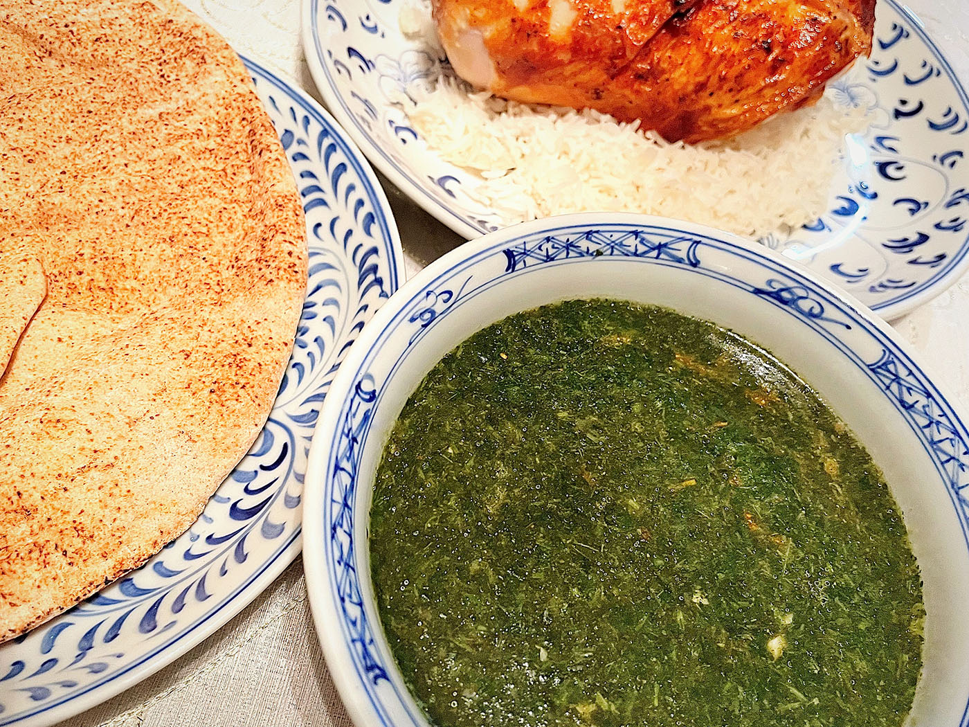 Molokhia revives many good memories thanks to the women in my family who excelled at rendering it a favorite. Reflecting back on my younger years in Cairo, I remember it as a symbol of agency, of my existence in a household of five, including exhausted parents, who worked full time. Desperate to get me, a child with rare cravings, to eat, my mother would ask me every Thursday what to make for our main meal on Friday. Intrigued by the privilege of deciding for my family the dish they would eat on our weekly holiday, molokhia was my consistent, incontestable choice. Often served as a trio with vermicelli rice and chicken —or sometimes rabbit or shrimp for an alternative gourmet twist — or chicken stuffed with freekah, it was enticing for me to mix the soup with the starch and protein for a tasty one-meal bowl that is easy to swallow as it imparts a mucilaginous consistency.