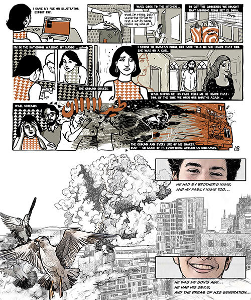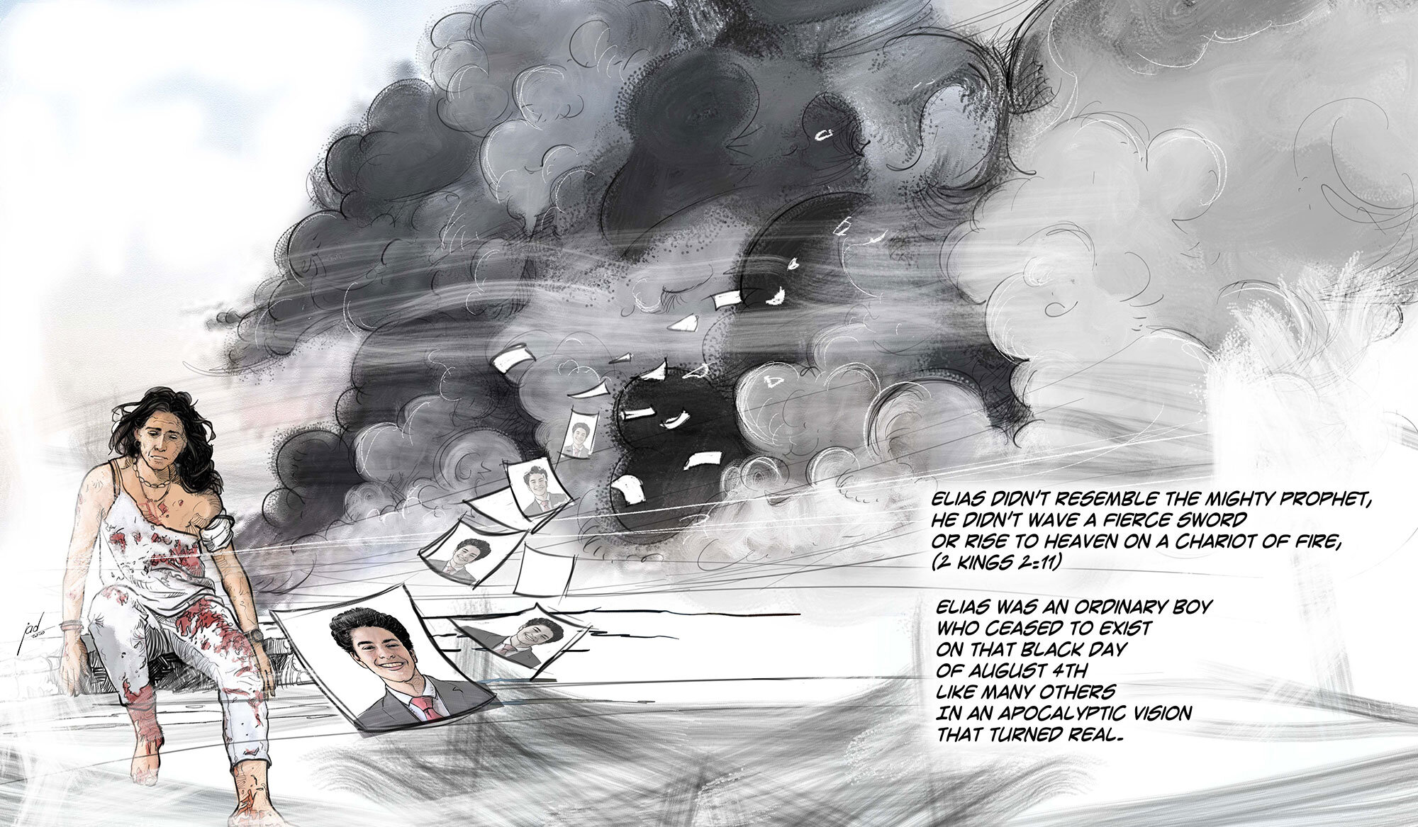 Beirut-based graphic artists Lina Ghaibeh and George “Jad” Khoury each recount what happened on the 4th of August, 2020, a day that shall live in infamy as far as Lebanon’s leaders are concerned. But the people will, at the end of the day, triumph.