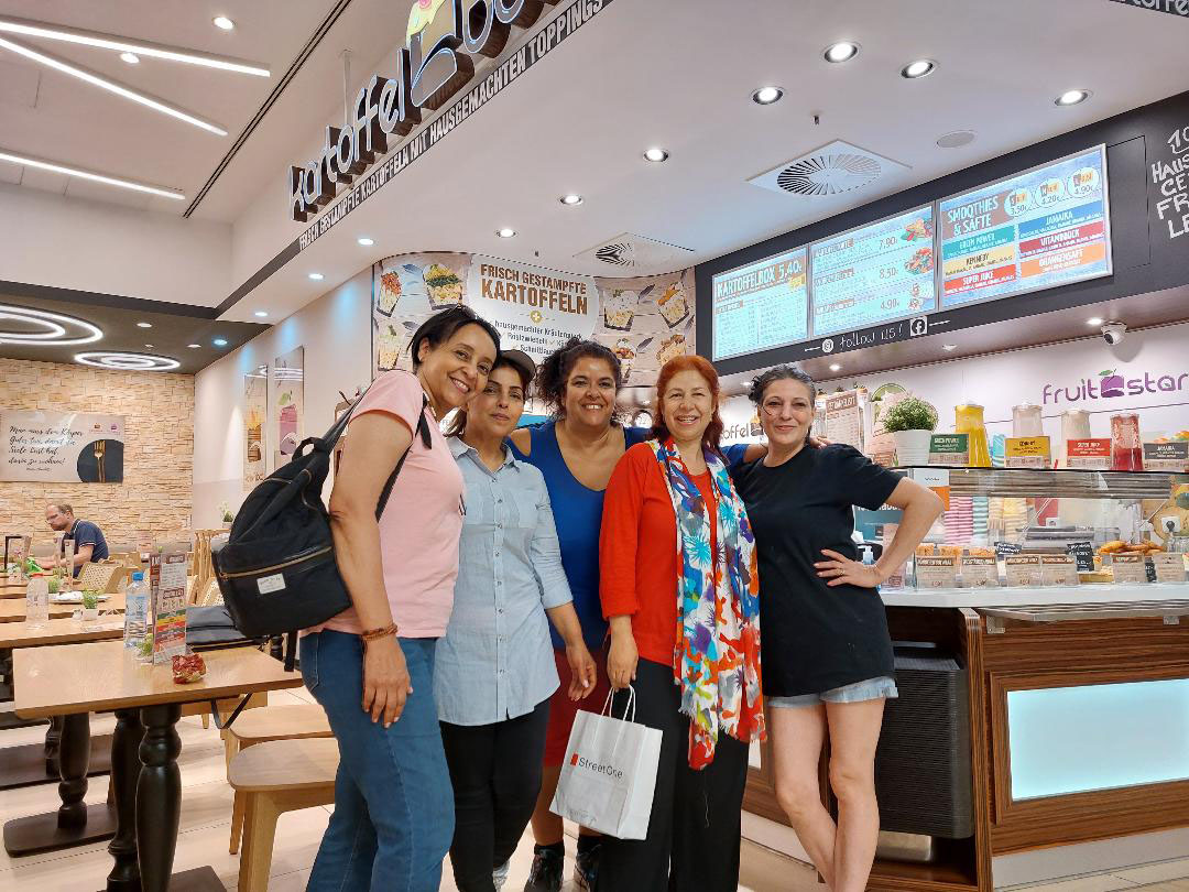 Reflecting on the incident with Hoda and Nora a couple of days later, we all seemed to sense something richly symbolic about five Arab women singing and dancing at a diner for Spanish specialties in a Berlin municipality. We also all felt that the whole encounter was genuinely friendly, and even had a touch of magic. On a certain level, the five of us connected deeply.