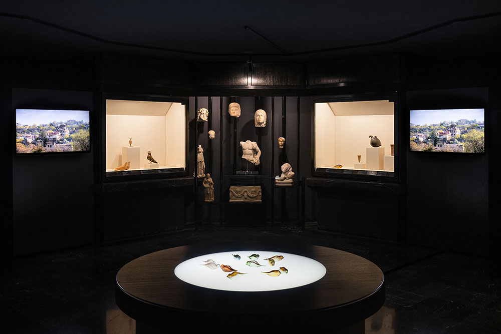 Some of Onar’s own glass works have temporarily taken up residence among these ancient antecedents as the museum hosts her solo exhibition, After Utopia: The Birds, alongside its collection of archeological artifacts. The show marks the privately run institution’s first foray into displaying contemporary art.