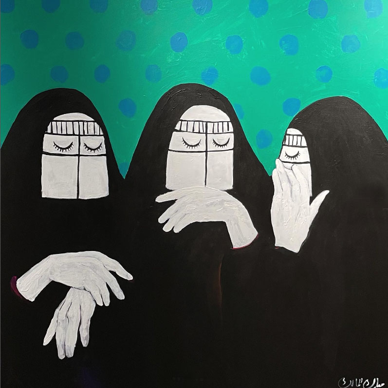 “My grandmother, who used to live with me, wore the batoola, and seeing it every day made me want to represent it in my work as a personal homage to her. I also wanted to incorporate an original representation of Qatari people in my works.”