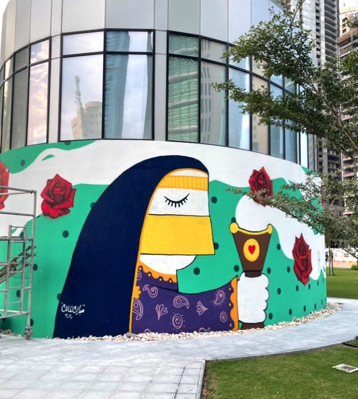 “The batoola represents culture, traditions, and home,” the 35-year-old Qatari street artist explained in an interview with TMR, adding that his grandmother was his muse.