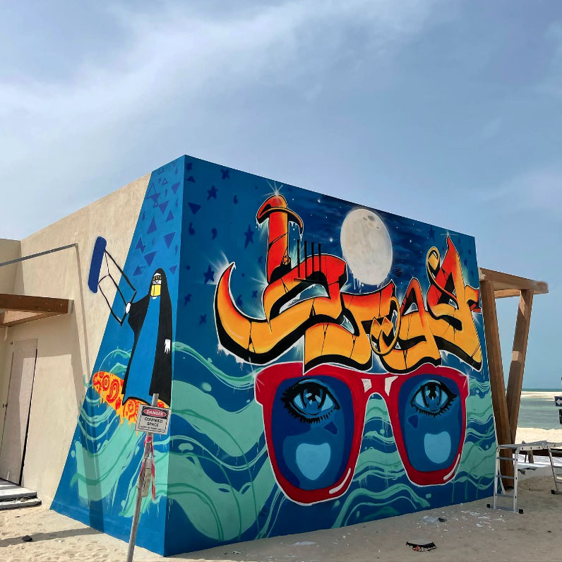 The rest of Qatar has seconded that sentiment. Al-Malik’s work is applauded on social media, and cultural and art institutions, such as the Katara Cultural Village and Doha Fire Station, invite him to spray-paint in their spaces. Al-Malik said he hasn’t experienced backlash, either for his art medium or content.
