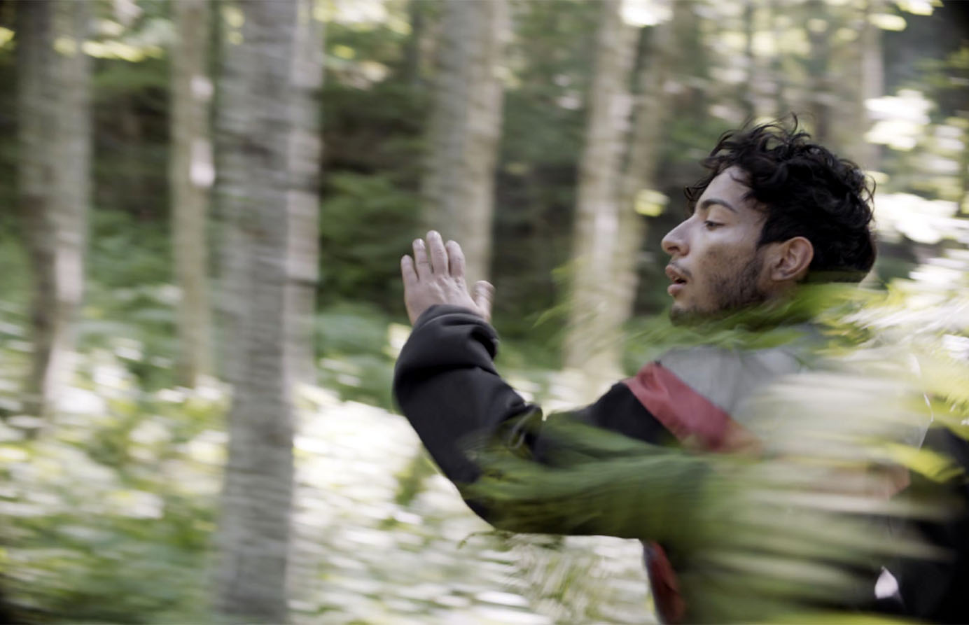 Lead actor Adam Ali’s disturbing portrayal of Kamal’s duress in Europa painfully conjures a brutal obliteration of Kamal’s youthful naivete as he traces and claws his way through a harrowing solitary jungle trek for days and nights that reverberate like an eternity. Europa opens with Kamal’s jarring narrow nighttime escape from Bulgarian soldiers, to whom an extortionate human smuggler appears to have treacherously delivered Kamal and others. Fleeing terrified and alone into pitch black, densely forested and alien territory, Kamal the terrified-terrorized protagonist moves before the camera in an effectively macro point of view that is dominated by his face and this point of view persists to dominate until the end of the film: we are with him, in his face and almost constantly inside his pained and angst-filled heavy breathing. Europa conveys its emotionally charged trajectory with only incidental dialogue, confined to the latter part of the film and mainly from people Kamal encounters. Kamals’ world in Europa is almost entirely solitary, in the forest.