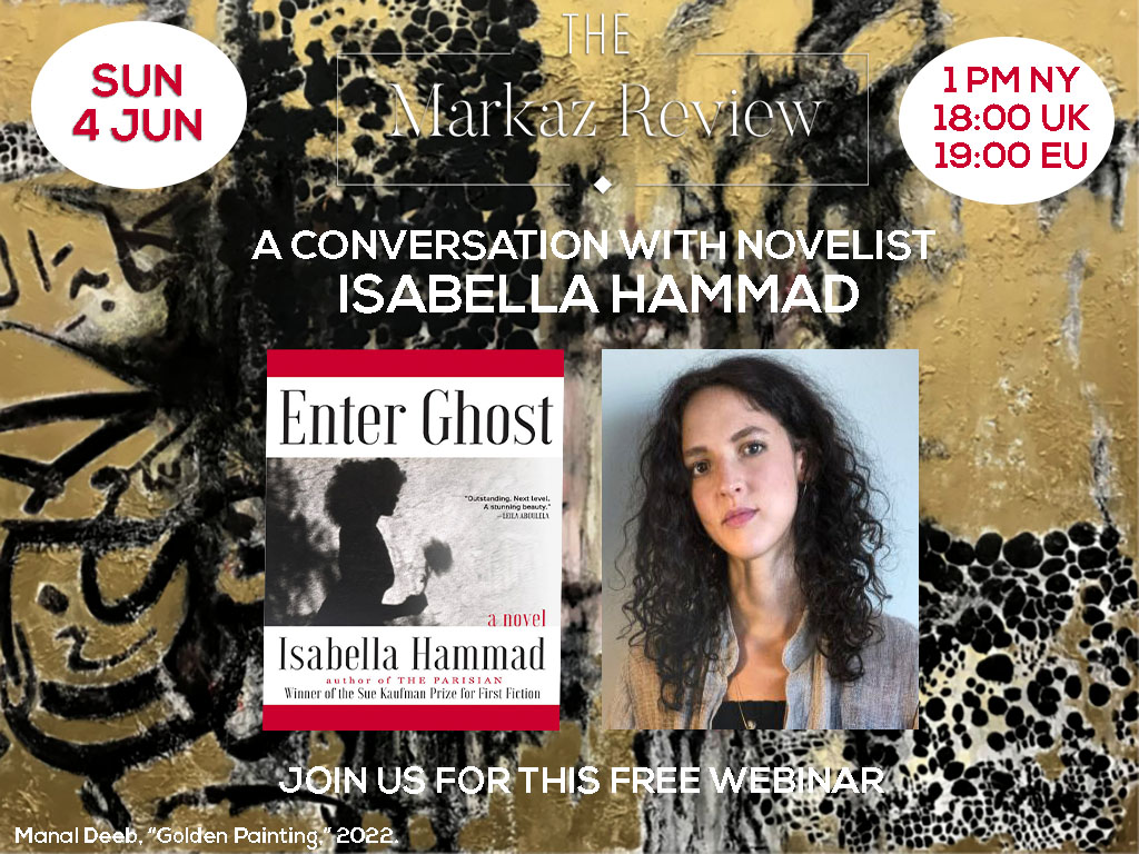 RSVP here The June 2023 BookGroup Selection is Enter Ghost, a novel by Isabella Hammad. She will be interviewed by editors Rana Asfour and Jordan Elgrably on Sunday, June 4, at 1 pm Eastern, 18:00 UK and 19:00 EU. Enter Ghost follows actress Sonia as she returns to Palestine and takes a role in a… Continue reading TMR Bookgroup Discusses Enter Ghost, with novelist Isabella Hammad