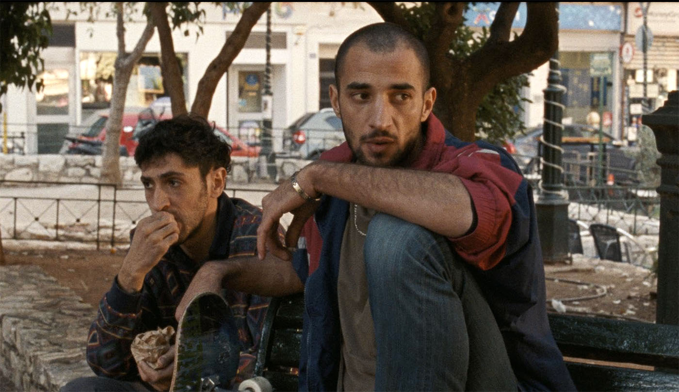 As the early sequences reveal, the two are unquestionably moral individuals, though of differing character. A skater who takes his board wherever he goes, Reda (Aram Sabbah) is relaxed and soft-hearted. Shatila (Mahmood Bakri) is intense and focused, hoping to eventually emulate his father’s success as a café owner. Impatient to reunite with the young wife and infant son he left behind in the camp, he’s the one tasked with managing the duo’s cash and is the brains behind their efforts to raise the money they need. The agony of their predicament affects the two men differently: Reda is prone to depression and has a history of drug abuse (rife among becalmed urban men, including those stranded in refugee camps and informal migrant gatherings), which may be why his previous sojourn in Athens ended with his humiliating return to the camp he had escaped. After they lose their savings, Shatila becomes more ruthless. Reda struggles to keep up.