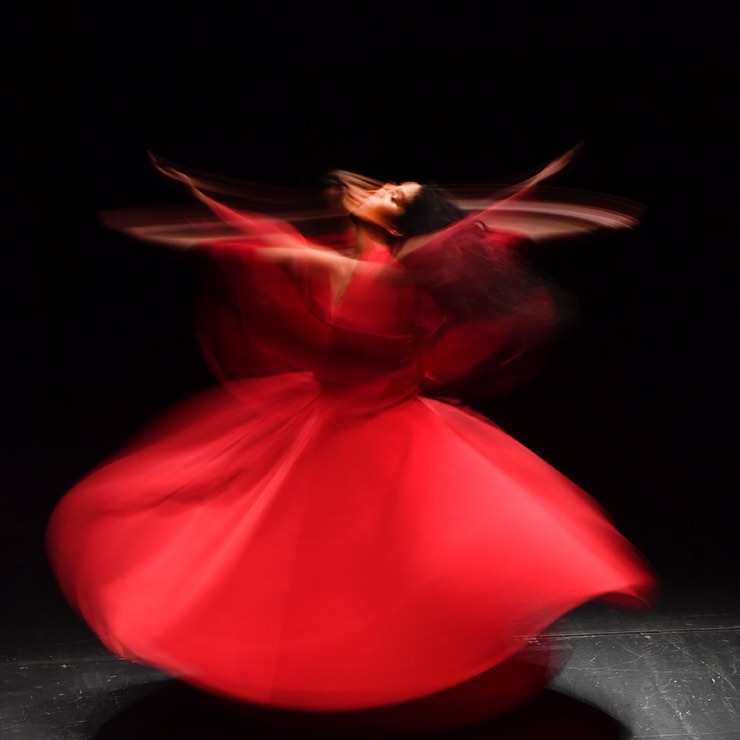 But then, Sufi artist Rana Gorgani, of Kurdish origin from Iran, added a spiritual flight of fantasy in the turmoil and the incessant turning of her hypnotizing dance, the samâ, which she performs as an act of devotion. Gorgani dominates the stage and captivates her audience; the splendor of her inner light shines through as a whirling dervish. For centuries, the ritualistic dance has been reserved for men, but for the past few decades, women, who are very much contested in Turkey, have been emancipating themselves through spirituality by reappropriating this dance.