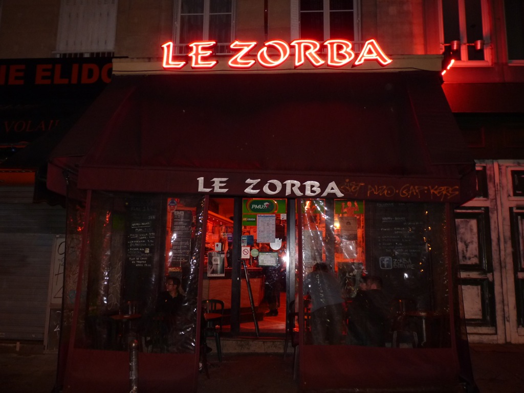 In the evenings — and especially Friday and Saturday nights — Le Zorba is a popular spot for a crew of 20- and 30-somethings who come here to party, dance and get drunk until it closes, like most bars in Paris, at two in the morning. A fourth and final wave of patrons — the most obliterated of all — tends to arrive when Le Zorba opens back up at 5 a.m. It’s one of the few places around to keep the party going.