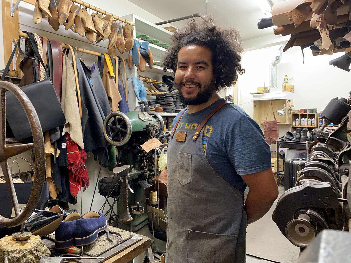 Fastforward to the present day — Khalid now lives in L.A. and owns a shoe repair shop at the original Farmers Market at Fairfax and 3rd Streets, where he leads creativity projects and performs repairs for each customer with a unique approach and attention to detail. Whether it be a heel replacement, arch support, handbag repair, or custom foot challenge, he will design something unique and comfortable.