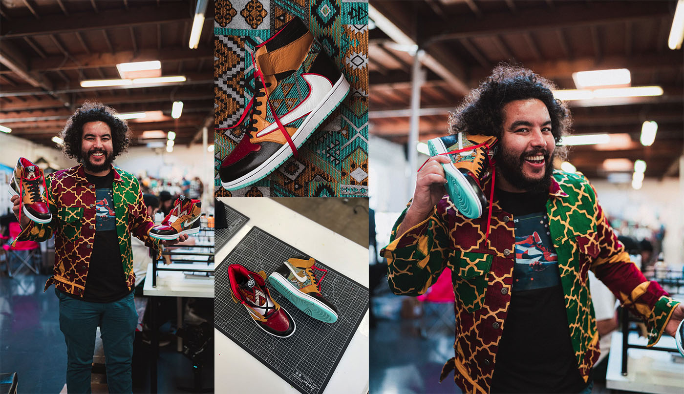 His custom designed sneaker is titled “My Journey: Morocco to California.” Khalid adds, “My business slogan is ‘inspired by Morocco, handmade in California’! One of my secrets is that I use all leftover recycled leather from companies in downtown L.A., which makes my handmades affordable.”