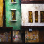 In such circumstances, it was no longer possible for Al Mufti to limit his art to the pure aesthetic exploration of cubism and abstraction, as he had done when living in France. It was no longer possible to turn a blind eye, as does Beirut; this inspired his painting “Hijab in the City.” What he calls “the Lebanese varnish” captures him; he also observes it in the facades of buildings: “There’s something very conservative despite the extravagance in our societies.” Through his art, he seeks to reveal the secret “skin” of Damascene and Beiruti buildings. He uses the word “skin” to refer to facades and walls, which he made speak in an exhibition entitled Urban Scape at Villa Paradiso in Beirut in 2017. Places speak for men.
