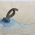 But the type of paper used in The Rainy Days series is different, it tolerates the multi-step elaborate painting processes in which Ali was trained. In this type of painting, Ali can delete parts of the work through layering, but this is much limited in the works he produced for Die Flut, which will premiere in the Singapore Biennale in October 2022.[6] In painting, he can go and come back, maneuver, but in the Die Flut series, it is only one act. That’s why, today, despite being painted in Berlin, this work relates to the moment of his childhood perhaps, where the first memories leave a clear and guiding mark on Ali and his understanding of life. In this series, this is Ali’s first time to work extensively on the same concept through both painting and drawings.