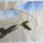 Ali says that he is not an abstract painter, and so a stroke on a piece of paper calls upon him to engage it with more thinking on the possibilities of drawing. Another stroke or other shapes start to crawl into the space of the painting based on what impressions the stroke made, not on its own, but also in relation to the intended series. Neither a stroke of black ink nor a developing painting on such paper can be altered or maneuvered, it has to be accepted, dealt with and built upon.