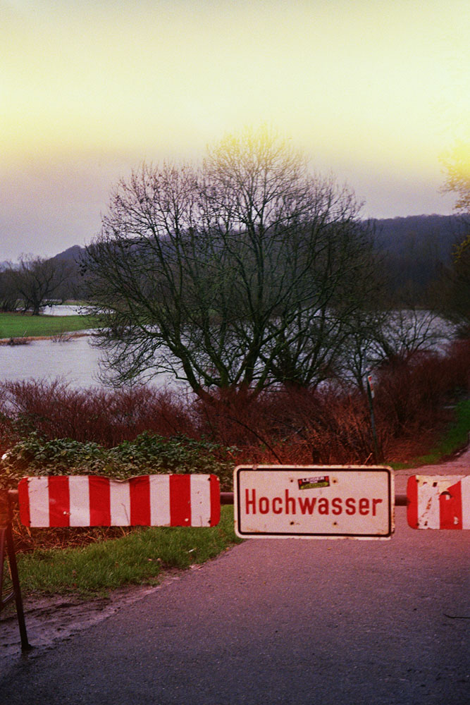 During the early latter half of 2021, Berlin-based artist Ali Yass spent a few weeks in a residency in Kunsthaus Essen, Germany.[3] There he worked on a series of paintings on canvas, many of which were inspired by the landscape that surrounded him in the Ruhr area. Throughout his residency, Ali jogged daily on certain routes until one day, people obstructed his way, telling him that the water had risen to the knees in the direction he was headed. On July 14 and 15, 2021, it rained so much that the Rheinland-Pfalz and Nordrhein-Westfalen were flooded, and soon severely damaged.