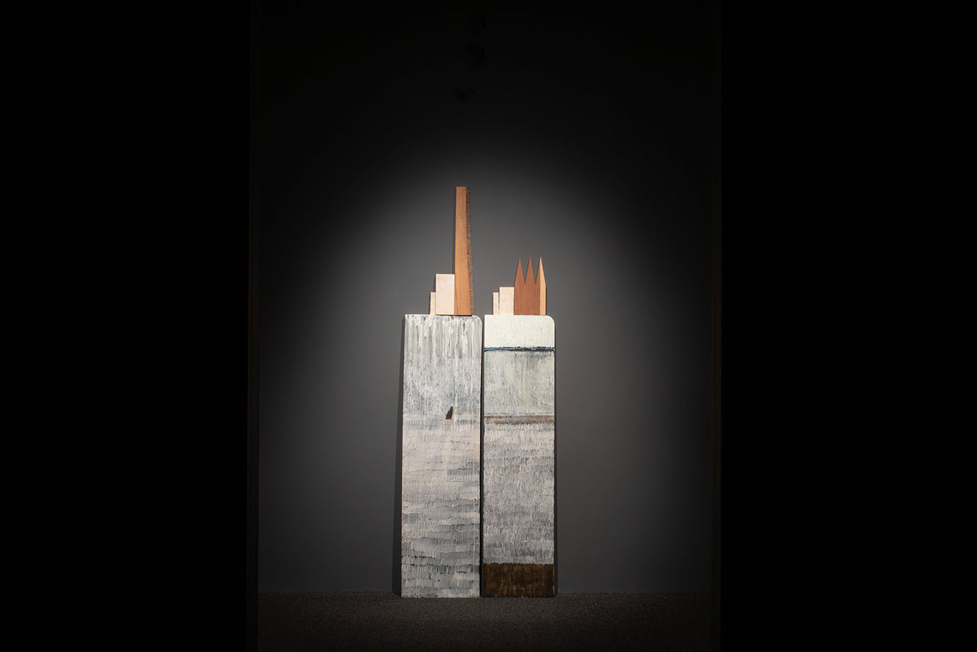 The sculpture confronts us with this failed couple, of predator and prey—in words of the poet Ovid, who handed down to us the most authoritative version of the myth. It is a reference to failed utopias, but not necessarily drawing our attention toward the state of failure as such, focusing instead on the remains of the utopian project (modernism, constructivism and the avantgarde are Velonis’ primary visual language), and its inscription onto the striated surface of history. Grounded in Tatlin and Rodchenko’s constructivist proposal, and its rejection of style as form, Velonis rejects beauty in a predisposition that he shares with Daphne’s request to Peneus. The destruction of beauty is in the context of 20th century utopias and the artistic movements that accompanied them, a demand for a minimalist realism that will show the inner structure of reality in its truer appearance: All the constituting parts are fragile, endangered, subject to decay, perishable and almost imperceptible to historical memory.