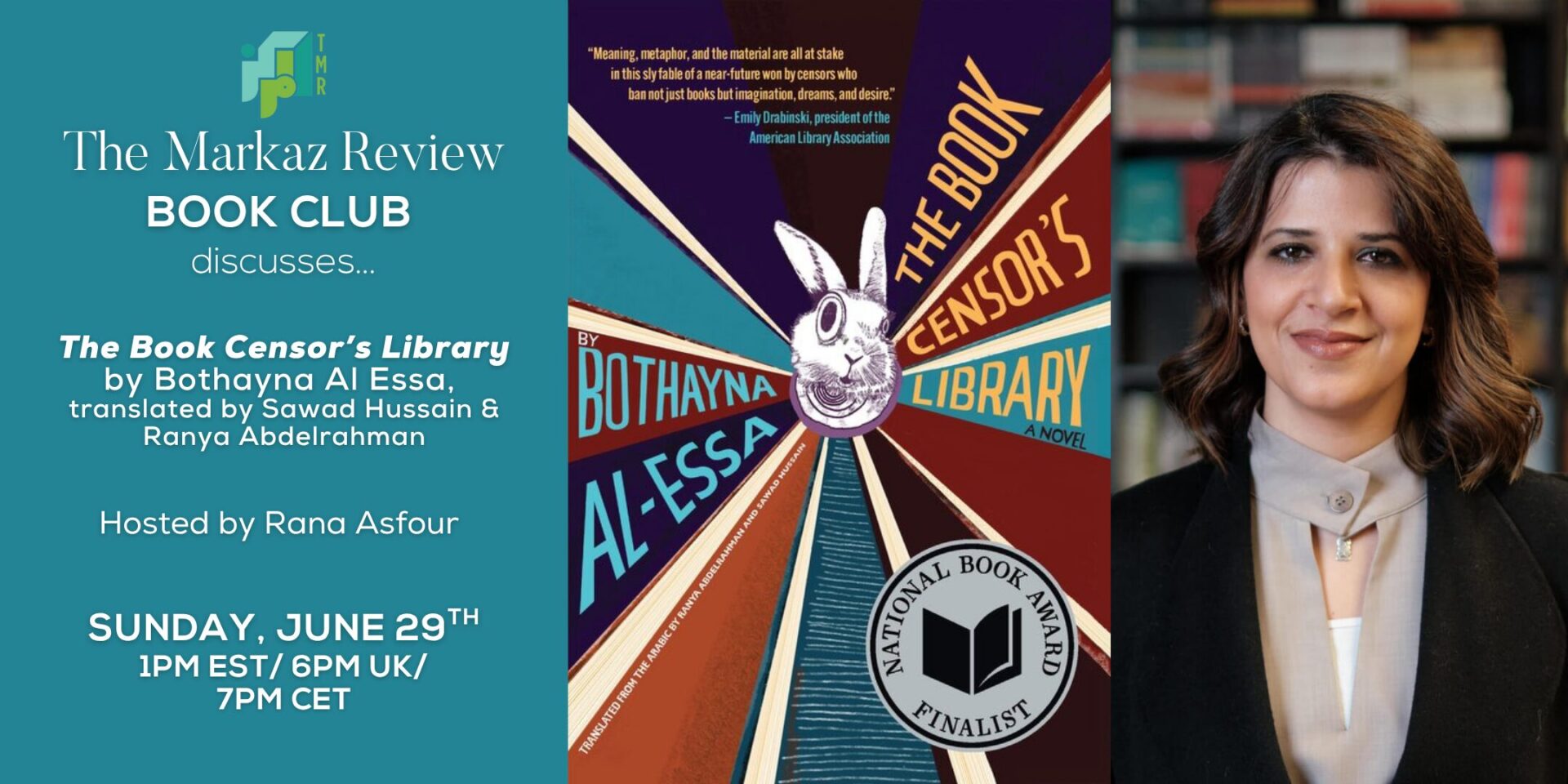 Join The Markaz Review's Book Club on Sunday, June 29th at 1pm EST/ 6pm UK/ 7pm CET to dive into Bothayna Al-Essa's "The Book Censor's Library," translated by Sawad Hussain & Ranya Abdelrahman.