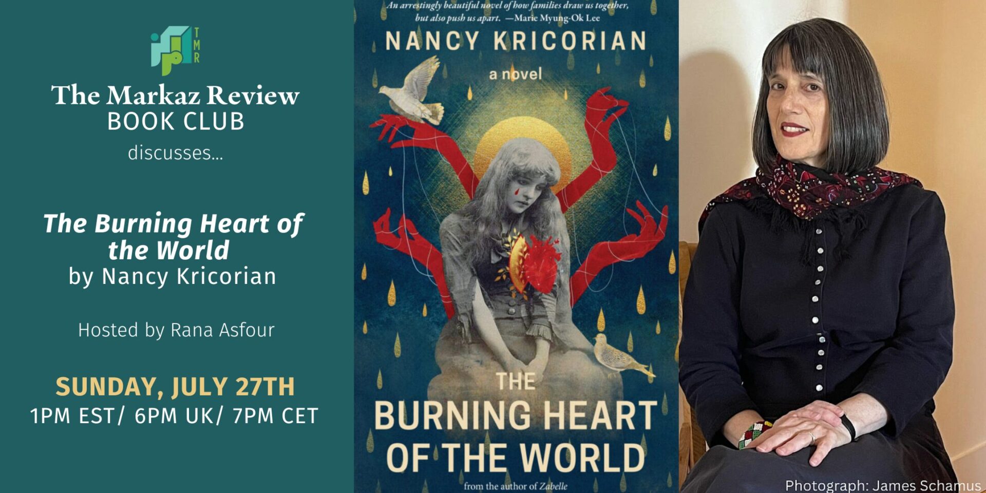 Join TMR'S Book Club on Sunday, July 27th to discuss "The Burning Heart of the World" with author Nancy Kricorian at 1pm EST/ 6pm UK/ 7pm CET.