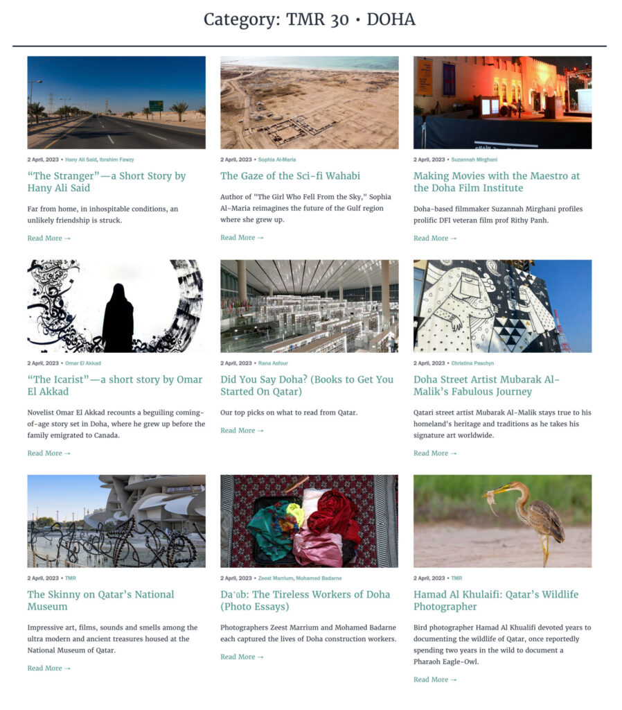 DOHA includes short stories, essays, articles, art and film that explore Qatar’s capital and cultural mecca, from guest editor Rana Kazkaz with support from Northwestern University-Qatar.
