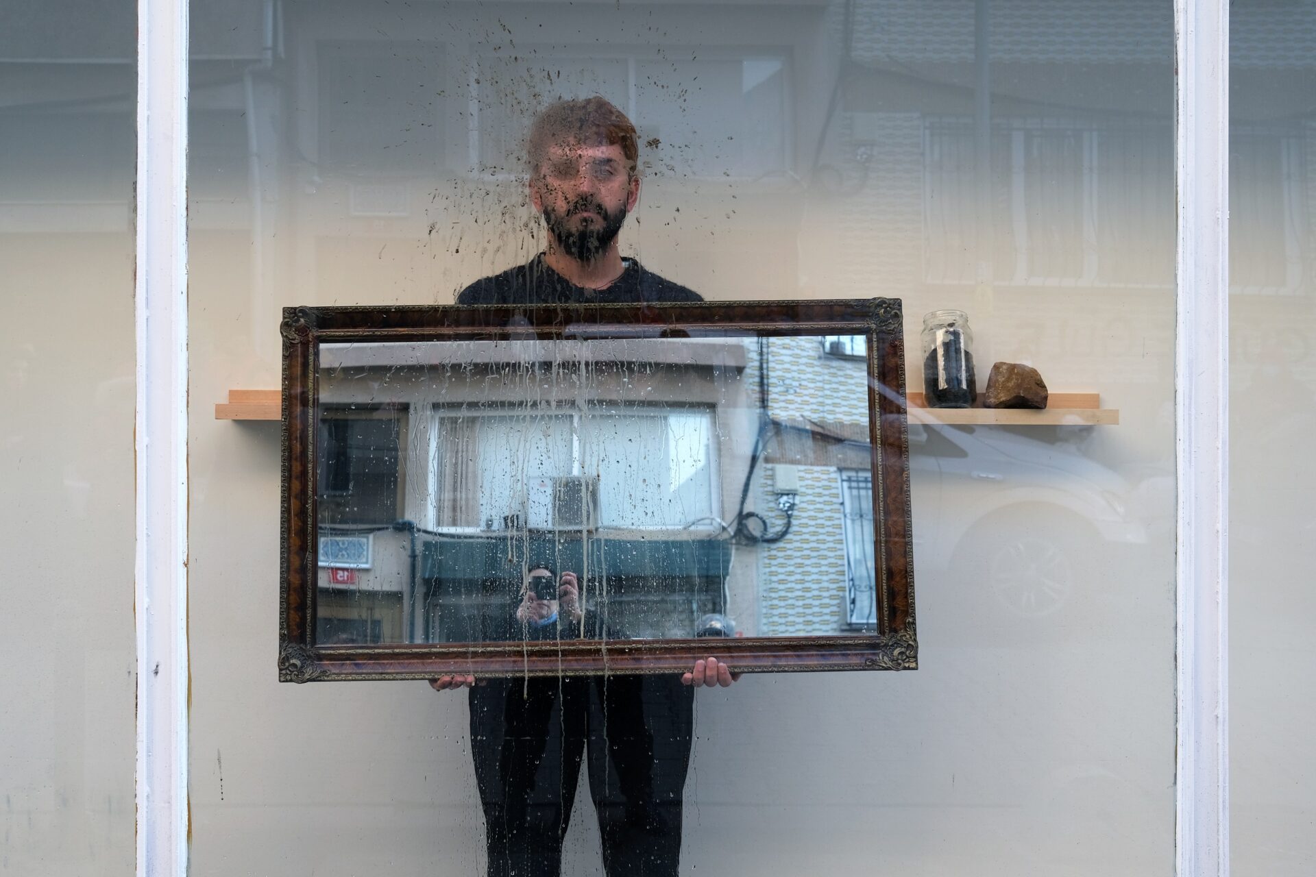 One of the photographs in the Possibility and Probability exhibition, part of Alpar’s “What Seeps in from Outside” series (2016–2025), zooms in on a surveillance camera perched on the corner molding of one of those traditional Mardin-style buildings, showing how the local architecture itself is engaged in constant monitoring of the populace. Another piece, “Resistance of Opacity” (2025), comprises a grouping of stainless-steel-coated souvenir renderings of Mardin landmarks, emphasizing how such heritage is often stripped of its specificity and context when packaged and sold for tourism, sidelining or erasing the people who inhabited the place.
