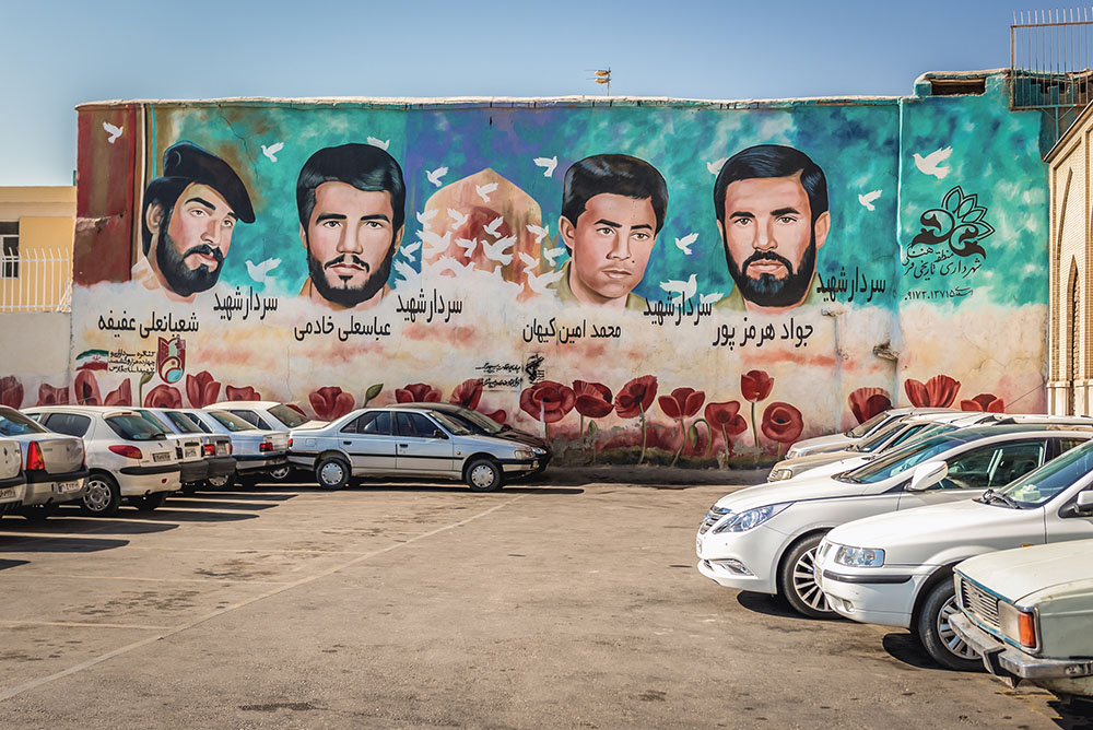 A Shiraz mural portrays martyrs of the Iran-Iraq war (courtesy Fotokon).