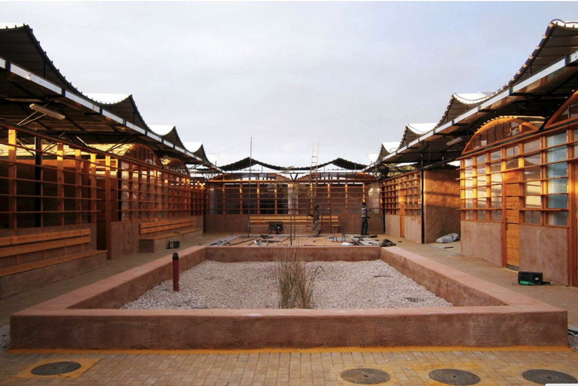 The Children Land’s Kindergarten sits in the Bedouin village of Um Al Nasser in the Gaza Strip. Situated near the border with Israel, it’s a dusty area enlivened with the sound of playing children. Although the facilities were destroyed by Israel in 2014 during its war against Hamas, they were rebuilt with environmentally-friendly materials supported by Italian NGO Vento Di Terra. The classrooms are airy, colorful and cool in the summer.