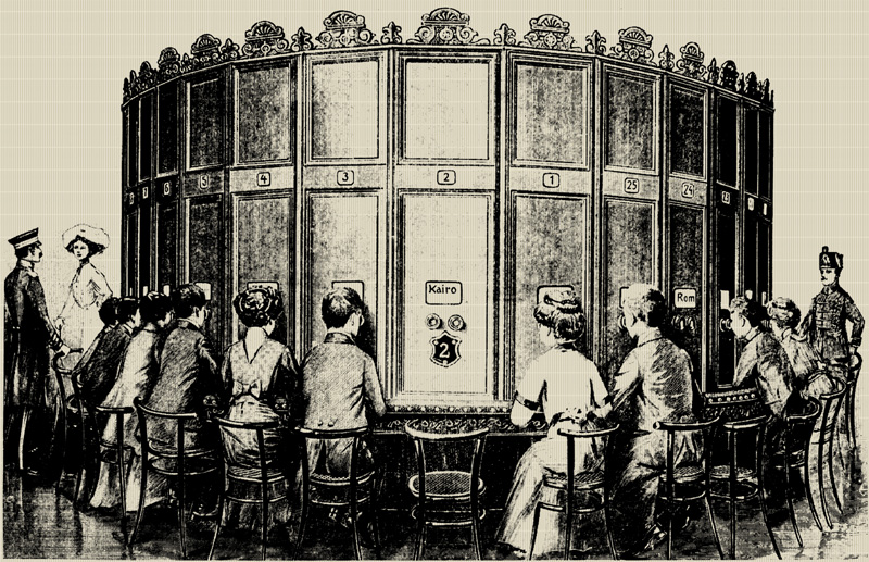 As it happens, the Kaiserpanorama can now be seen in the Humboldt Forum, a huge round construction that included seats and a mechanically operated camera-obscura slide show. It was popular at the turn of the century, before the advent of cinema, as it allowed you to look through two lenses and watch a variety of spectacular, exotic or touristic images from faraway countries.