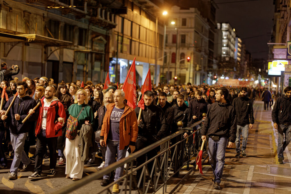 Senior correspondent Iason Athanasiadis attends a protest and critiques Greek government corruption.