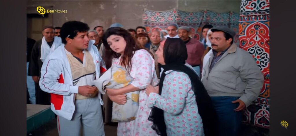 ﻓﻲ أﺛﻧﺎء ھذه اﻟرﺣﻠﺔ ﺗﺄﻛل ﻛرﯾﻣﺔ وﺗﺷرب ﻣن أﻣوال ﺗرﻛﮭﺎ ﻟﮭﺎ رﺟﺎل ﺻﺎدﻓﺗﮭم ﻓﻲ طرﯾﻘﮭﺎ ﻟﻛﻧﮭم ﻟم ﯾﺟدوا ﻓﯾﮭﺎ وھﻲ ﺣﺎﻣل ﻣﻼذًا آﻣﻧًﺎ ﻟﻠﻌﺑث ﺑﺟﺳﻣﮭﺎ ﻓﺗرﻛوا ﻟﮭﺎ أﻣواﻻً ﻛطﻘس ﺗطﮭﯾر ﻗﺑل اﻟﺗﺧﻠﻲ ﻋﻧﮭﺎ. ﯾﺻور ﻟﻧﺎ اﻟﻣﺧرج واﻟﻛﺎﺗب ﻋﺑر رﻓض اﻟرﺟﺎل اﻟذﯾن ﻗﺎﺑﻠﺗﮭم ﻛرﯾﻣﺔ ﻟﻠﻌﺑث ﺑﺟﺳدھﺎ أو ﺣﺗﻰ ﻣﺳﺎﻋدﺗﮭﺎ، أﻧﮭﺎ ﻓﻲ ﻧظرھم ﺗرﻗت ﻣن ﻛوﻧﮭﺎ ﻻ ﺷﻲء -ﻛﻣﺟﻧوﻧﺔ- وأﺻﺑﺣت إﻧﺳﺎﻧﺔ. ﻓﯾﻛﺷف ﻟﻧﺎ -اﻟﻣﺧرج واﻟﻛﺎﺗب- وﺑطرﯾﻘﺔ ﻣؤﻟﻣﺔ ﺧﻼل رﺣﻠﺔ ﺣﻣل ﻛرﯾﻣﺔ ﻋن اﻟﮭﯾﻛل اﻟذﻛوري اﻟذي ﺗﺗورط ﻓﯾﮫ ﻣﻊ رﺟﺎل ﯾﺑﺣﺛون ﻋن ﺷﻲء وﻟﯾس اﻣرأة، وأن ﺑﺣﻣﻠﮭﺎ ﺗؤﻛد وﺑدون أي ﻛﻼم ﻋﻠﻰ أﻧﮭﺎ اﻣرأة ﻛﺎﻣﻠﺔ ﻟﮭﺎ ردود أﻓﻌﺎل. ﻛل ھذا وﻟم ﺗﻛن ﻛرﯾﻣﺔ -ﻛﺎﻟذﯾن ﻗﺎﺑﻠﺗﮭم- اﻛﺗﺷﻔت ﺣﻣﻠﮭﺎ ﻓﻲ أﺛﻧﺎء رﺣﻠﺗﮭﺎ ﻓﻲ ﺷوارع اﻟﻘﺎھرة. ﺗﻛﺗﺷف ﺣﯾﻧﻣﺎ ﺗﻛﺑر ﺑطﻧﮭﺎ وﯾﻠﻔت ﻧظرھﺎ ﺑﺷﻛل ﻣﺑﺎﺷر ﺻﺎﺣب ﻣﺣل اﻟﻌﺻﯾر، أﻧﮭﺎ ﺣﺎﻣل ﻛﻣﺎ اﻟﻌذراء، ﺣﯾﻧﻣﺎ ﺗﺗﺳﻣر ﻛرﯾﻣﺔ أﻣﺎم أﯾﻘوﻧﺔ ﻟﻠﻌذراء ﺣﺎﻣﻠﺔ اﻟﻣﺳﯾﺢ. ﻛم أرﺑﻛﮭﺎ ھذا اﻻﻛﺗﺷﺎف؟ وھﻲ أﺻﻼً ﺗﺣﻣل طﺑﻘﺎت ﻣن اﻻرﺗﺑﺎك ﻓوق ظﮭرھﺎ، ارﺗﺑﺎك داﺧﻠﻲ ﯾﻌﺗرﯾﮭﺎ ﻧظرًا إﻟﻰ ﺣﺎﻟﺗﮭﺎ اﻟﻌﻘﻠﯾﺔ، وارﺗﺑﺎك ﺗﺻدره ﻟﻣن ﺣوﻟﮭﺎ. ﻓﮭﻲ ﺗﺗﺣرك داﺧل ﺛﻧﺎﺋﯾﺎت ﻣن اﻟﺑداﯾﺔ، ﺑﯾن أن ﻣظﮭرھﺎ اﻟﺧﺎرﺟﻲ أﻧﺛﻰ ﻛﺎﻣﻠﺔ وﺑﯾن أن ﻋﻘﻠﮭﺎ ﻣﺎ زال ﻋﻘل طﻔل ﺻﻐﯾر، وﺑﯾن أﻧﮭﺎ ﻗوﯾﺔ ﺑدﻧﯾًّﺎ وھﺷﺎﺷﺗﮭﺎ اﻟداﺧﻠﯾﺔ. ﻛﯾف اﺳﺗطﺎﻋت ﻛرﯾﻣﺔ اﺳﺗﯾﻌﺎب أن ھﻧﺎك آﺧر ﺑداﺧﻠﮭﺎ، آﺧر ﯾﺧﺻﮭﺎ وﻣﻧﮭﺎ وﻋﻠﯾﮫ اﻟﺗﺣرك ﻣﻌﮭﺎ داﺧل ھذه اﻟﺛﻧﺎﺋﯾﺎت؟