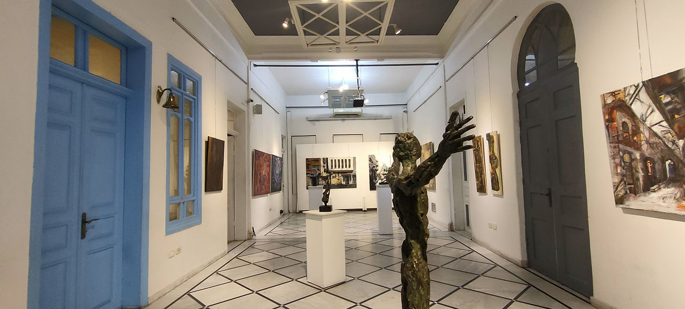 The professional class has largely stayed away and continues watching the situation, sometimes with hope, sometimes with horror. A diplomatic source in Austria told me that of the 100,000 Syrians living in the country, only about 250 have chosen to return, and the numbers in Germany were less than 500, for a country that hosts over a million Syrians. Gallerist Roula Suleiman, from Zawaya Art Gallery, one of the few art centers still open since the beginning of the new era, says that many Syrian artists have visited from Europe, especially in the early days, but nobody would remain for too long — the material conditions are far from sustainable. Suleiman tells us half-jokingly that it would be more profitable for her to run a shawarma shop, and explains that the gallery is not financially sustainable.