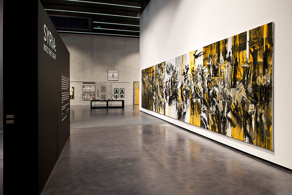 A paradoxical tension exists between the desire to bring culture back to the country, narrating the tragic history of the war and the impossibility of luring Syrian artists back to a country that entirely lacks the infrastructure to support their practice. But nothing is ever transparent in Syria, and the exhibition Path, widely publicized in regional media, is a formidable case in point: Dwelling on the topic of forgiveness, 29 Syrian artists brought together different narratives about the ongoing grief of the country. The exhibition was held at the unfinished Massar Center, conceived in the shape of the Damask rose, by Danish firm Henning Larsen. In the narrative of the exhibition, the reclaimed building served as a metaphor for the current state of the country, since its construction was halted by the war and never resumed.